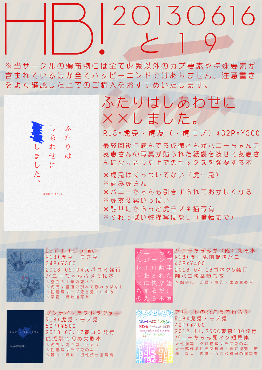 出るようなら、というか無配に限らずおれうさちゃん関連で何か言いたいことができたらまた追記します