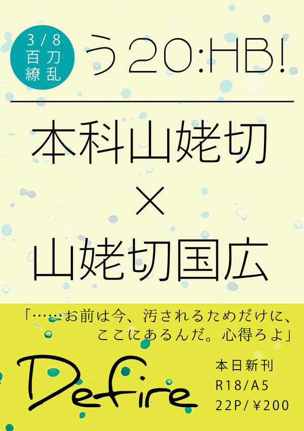 そもそも『山姥を~』で書いたような、どっちにも山姥退治の伝説がついてるせいでどっちが山姥を切ったのかよくわかんなくなってる本科と写しってすげえ沼だよなあって思ってて(まあまんばの台詞的に公式としては本科だけが山姥を切ってそうなんですけど未確定なので都合よくこじつけます)、でもそれ本科的には自分の呼び名が写しについた伝説から逆輸入されてつけられたものかもしれないとなれば、そしてその写しが時に自分よりも評価されることすらある程美しい見目をしているとなれば、それはもう性格によってはこじらせ待ったなしだし写しに当たったりすることもあるかもしれないしでもそこで写しの方は本科をよく思っててだからこそ自分が存在したせいで本科がこじらせてしまっているという事実が苦しいしどうにかできるならいくらでもどうにかしたいっていう献身が生まれてそれが本科へと返されてしまった日にはもうDV共依存待ったなしじゃんな……ってものすごい発想が飛躍して自分で萌え滾ったので自分でそれをそのまま書きましたというアレです。つまりは俺得本です。もう完全に好きなようにやりすぎてるんですが楽しめそうな人に楽しんで頂けると嬉しいです。よろしくお願いします!