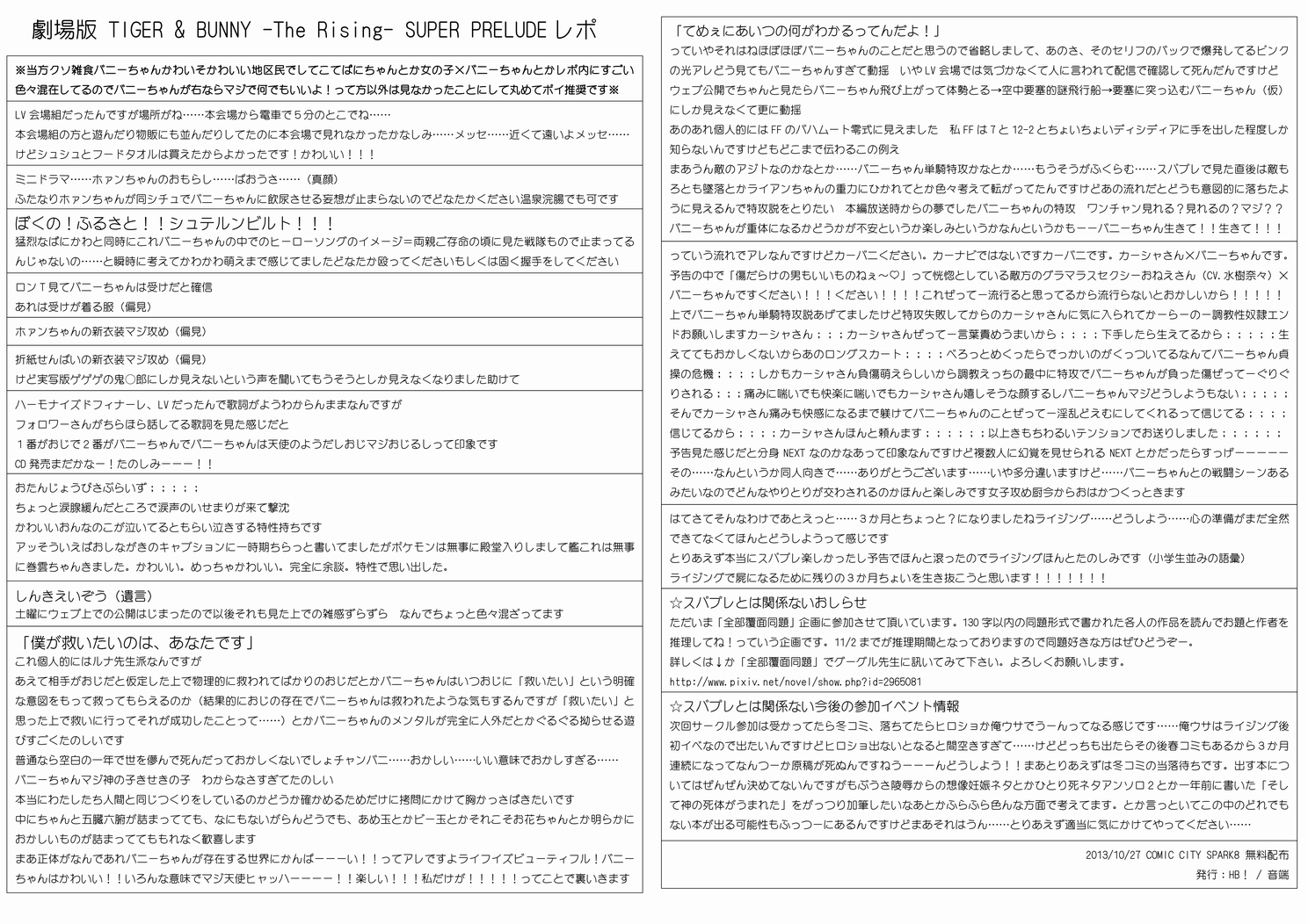 見事に文字しかねえ!!8割ツイッターで喋った!!!ど、どうしてもなにか出したかったんだもん……